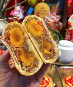 😋 Cắn một miếng, bạn sẽ cảm nhận ngay hương vị đặc trưng của nhân thập cẩm gà quay vi cá, hạt điều bùi béo, hạt dưa thơm lừng, trứng muối béo ngậy, hòa quyện cùng vị mặn mà của lạp xưởng, mè… Tất cả tạo nên một hương vị khó cưỡng! 💯