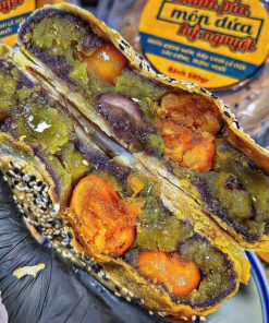 💛 Lớp nhân mềm mịn từ đậu xanh, lá dứa, khoai môn dẻo dẻo kết hợp cùng hương sầu riêng đặc trưng – chỉ cần cắt bánh là mùi hương đã lan tỏa, đánh thức vị giác.