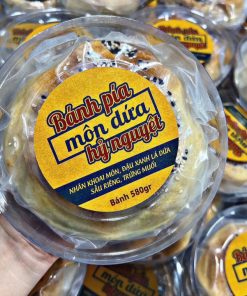 ✨ Bánh 580gr với nhân môn dứa, sầu riêng, trứng muối béo mặn quyện hòa cùng vỏ pía mè lột da truyền thống, nướng vàng óng, thơm lừng.