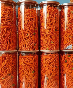 - Snack que tăm cay cay, mặn mặn, giòn giòn cực ngon. Thơm giòn lại có chút vị béo.