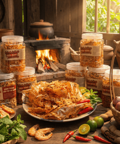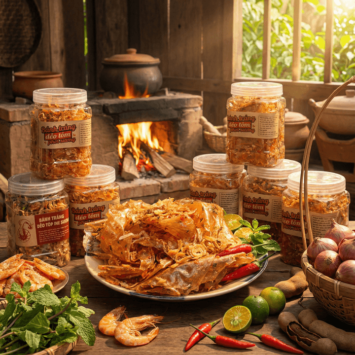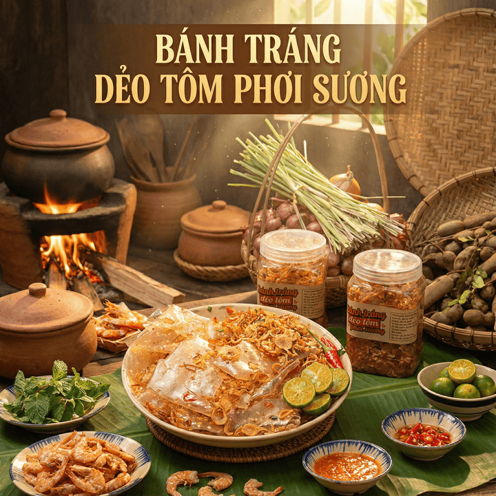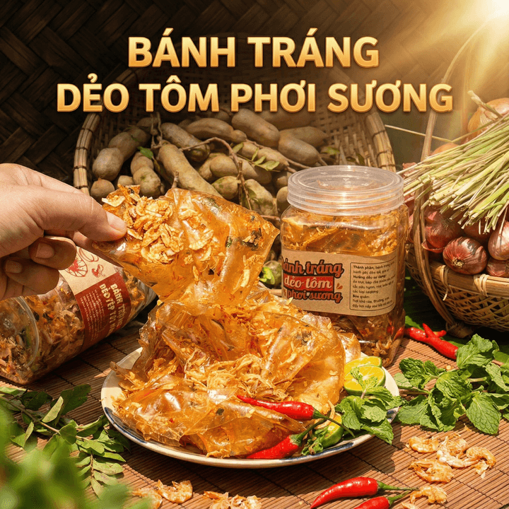 🧡 BÁNH TRÁNG DẺO TÔM PHƠI SƯƠNG – HŨ 400GR 🦐