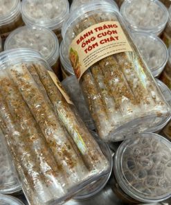 BÁNH TRÁNG ỐNG RUỐC TÔM HÀNH CHÁY TỎI, ĂN LÀ MÊ 200G – WINNIE HOUSE