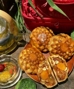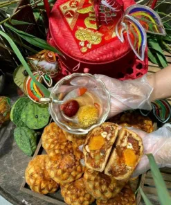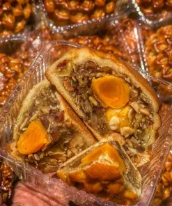 🍃🍃 1 bánh nặng 200g bánh được nướng than hàng thủ công bằng tay , vỏ bánh tươi mềm nhân thập cẩm gồm thịt gà quay – hạt điều – hạt dưa – trứng muối – mè – lạp xưởng…v.v…, !
