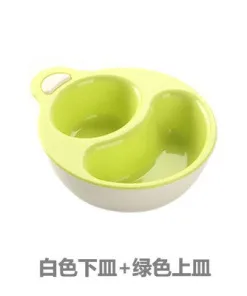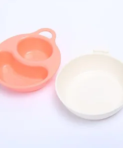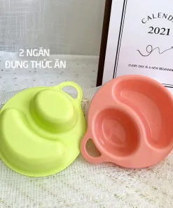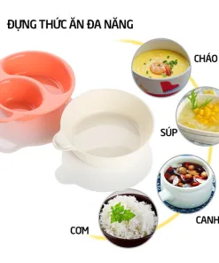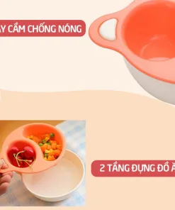 – Bát gồm 2 lớp, lớp trên màu xanh hoặc hồng chia thành 2 ngăn, các mẹ có thể chứa rau củ, thịt cá, lớp dưới màu trắng có thể chứa cháo trắng, cơm!