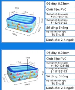 - Bể bơi phao chữ nhật cho bé thỏa thích chơi tại nhà trong mùa hè nóng bức.