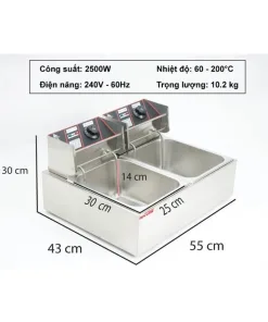 Bếp chiên nhúng đôi dầu bằng điện là loại bếp chiên được sử dụng rộng rãi tại các cửa hàng bán đồ ăn nhanh, khoai tây lốc xoắn, các nhà hàng….