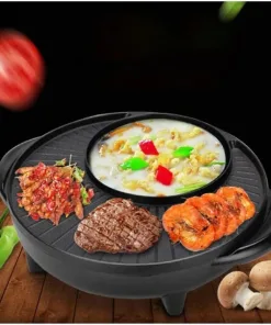 – Nồi Lẩu Nướng Điện 2 ngăn là sự kết hợp hoàn hảo giữa bếp nướng và bếp lẩu vô cùng tiện dụng. Với Bếp Lẩu Nướng Tròn, người sử dụng có thể vừa nướng nhiều loại thức ăn và đồng thời nấu lẩu cùng một lúc.