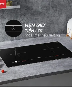 - Chất liệu mặt bếp: Mặt kính cường lực sang trọng, bo viền kim loại sang trọng