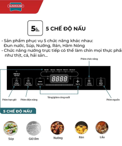 Bếp hồng ngoại SUNHOUSE SHD6011 được trang bị các phím bấm hiển thị Tiếng Việt và màn hình LED hiển thị đa thông tin, mang đến sự tiện lợi cho người dùng trong quá trình sử dụng.