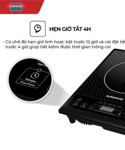 Bếp hồng ngoại SUNHOUSE SHD6011 có chế độ hẹn giờ bật trước 12 giờ và cài đặt tắt trước 4 giờ giúp người dùng tiết kiệm được thời gian trông coi