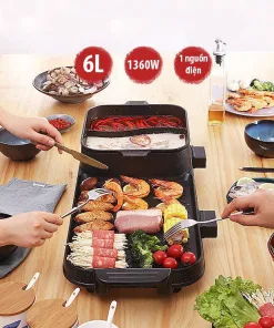 - Bếp nướng kết hợp bếp lẩu giúp bạn có thể cùng lúc vừa nướng và nấu lẩu vô cùng tiện lợi.