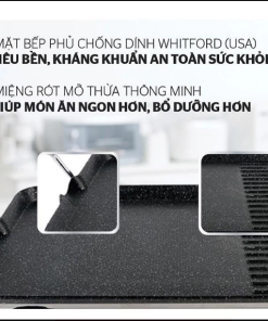 • Mặt bếp/Khay nướng: Chống dính Whitford (USA) phủ đá hoa cương.