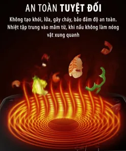- Mâm từ đường kính lớn được quấn 2 lớp kết hợp lõi Ferit tạo hiệu suất tối đa cho bếp, độ bền cao, tiết kiệm điện năng tiêu thụ.