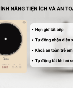 Bếp từ đơn Midea MIC221T0AGA thiết kế thời trang, sang trọng, tăng thêm thẩm mỹ cho căn bếp. Công suất 2200W giúp nấu nướng nhanh chóng, 9 mức nhiệt phù hợp với nhu cầu nấu nướng đa dạng của gia đình. Đặc biệt có 6 chế độ nấu tự động tiện lợi, linh hoạt, cùng bảng cảm ứng chạm hiện đại, dễ sử dụng, tăng thêm trải nghiệm tiện lợi cho người dùng.