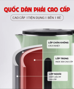 – Đặc biệt: Mâm nhiệt inox đặc biệt truyền và thu nhiệt rất nhanh giúp bình đun NÓNG NHANH – NGUỘI NHANH. THÂN VỎ CÓ 03 LỚP CÁCH NHIỆT