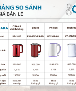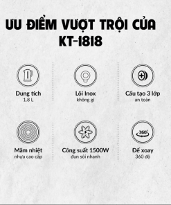 – Thiết kế: Đế xoay 360 độ. Tự ngắt khi nước sôi và khi cạn nước để bảo vệ an toàn cho người sử dụng.