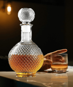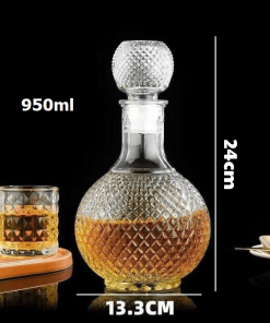 Bình Thủy Tinh Tròn Đựng Rượu Họa Tiết Kim Cương Sang Trọng Dung Tích 950ml