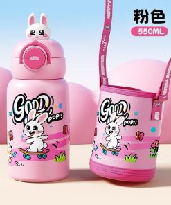 Bình giữ nhiệt APPLE cho bé đi học 550ml inox 316 an toàn , Cốc giữ nhiệt nhiều màu có vòi hút và quai dây đeo chéo