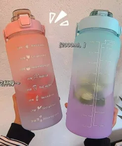 Bình nước 2 lít dành cho người lười uống nước bình nước cute 2L có ống hút, vạch chia nhắc giờ