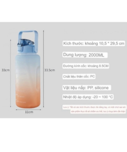 - Tên sản phẩm: Bình nhắc nhở, Bình nước 2 lít có chia vạch nhắc giờ