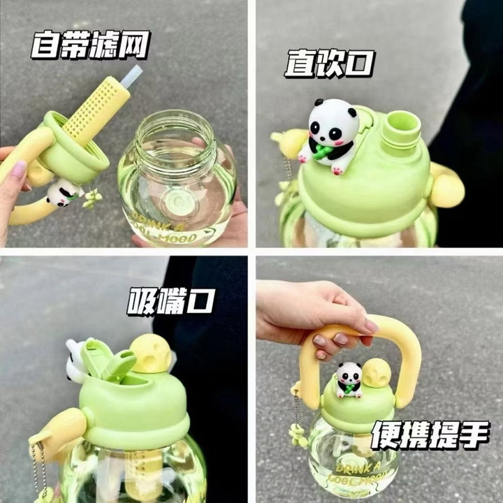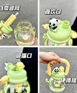 Bình nước panda gấu trúc 800ml kèm lõi lọc trà và ống hút LILA BNPAN85