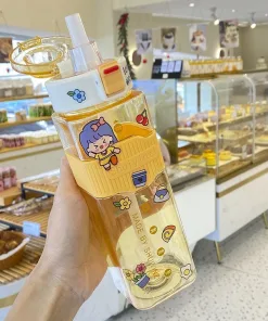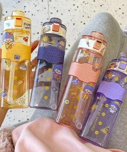 Bình nước cute cho bé đựng nước có ống hút vòi 550ml phù hợp trẻ em đi học, đi chơi dã ngoại, thể thao