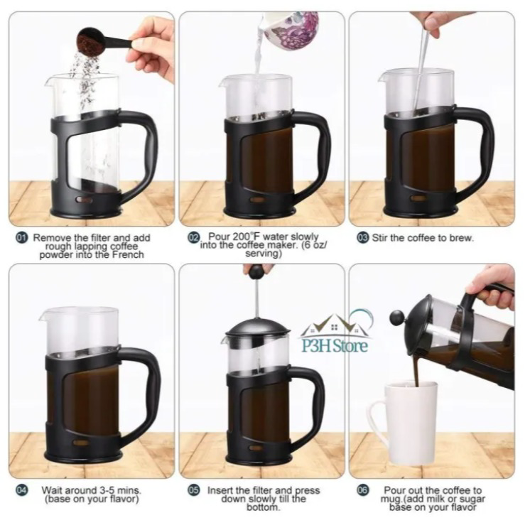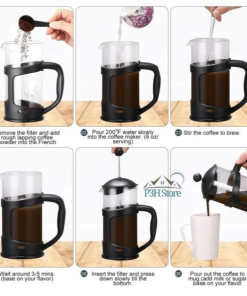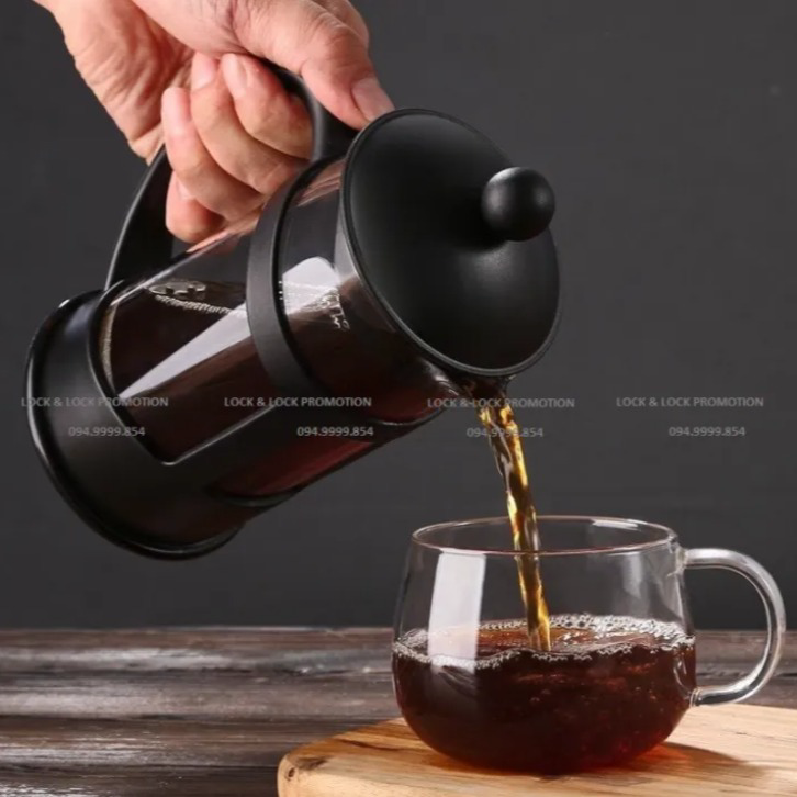 ⭐️ Dung tích 800ml – Thân thủy tinh chịu nhiệt Brosilicate, bộ lọc inox 304, nắp, vỏ ngoài tay cầm nhựa PP