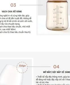 – Bình trong suốt, vạch chia ml rõ ràng, dễ dàng đong sữa và vệ sinh