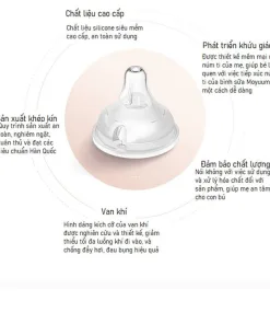 Moyuum được các mẹ đánh giá là bình sữa có núm ti giống với ti mẹ nhất nên mang lại cảm giác thân quen, giúp bé dễ dàng thích nghi khi chuyển từ bú mẹ sang bú bình.