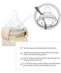 – Núm ti chất liệu silicone cùng thiết kế sáng tạo với van lưu thông khí, ngăn ngừa không khí bên ngoài tràn vào bình sữa, giúp bé không bị đau bụng, ảnh hưởng hệ tiêu hóa, tránh tình trạng ọc, tràn sữa khi uống.