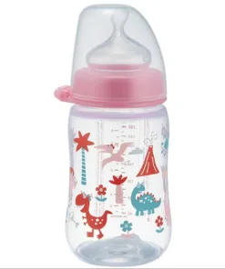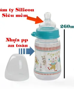 Bình sữa Nip cổ rộng nhựa PP có dung tích 260ml, kích cỡ 0 cho bé từ sơ sinh và lỗ chảy sữa size M mang tới dòng chảy vừa