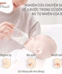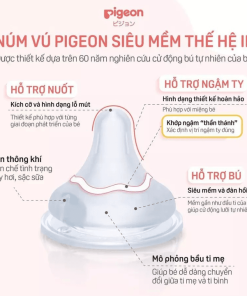 – Bình sữa sử dụng núm ty Pigeon SofTouch, chứa van thông khí AVS chống đầy hơi sặc sữa. Bên cạnh đó, đường khớp ngậm độc đáo trên núm ty còn giúp bé xác định vị trí ty đúng, nhờ đó việc ty sữa cũng trở nên dễ dàng và hợp tác hơn.