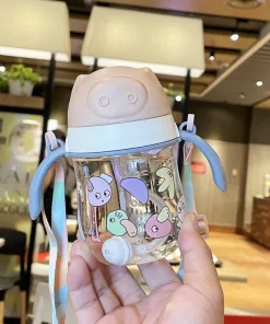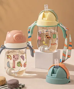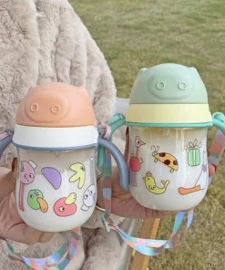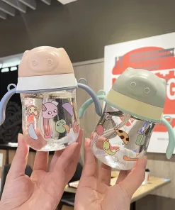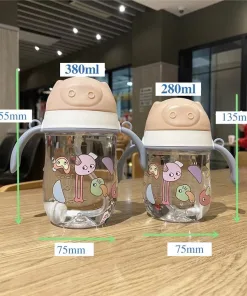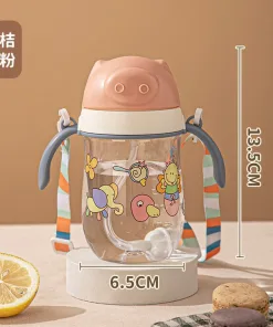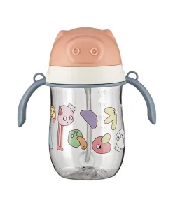 Bình uống nước có tay cầm hình heo dung tích 280ml có thiết kế nắp đậy và tay cầm, giúp bé giữ chặt bình trong tay không rơi rớt. Bình uống nước cho bé còn có ống hút chống sặc cho trẻ dễ dàng hơn trong việc uống nước