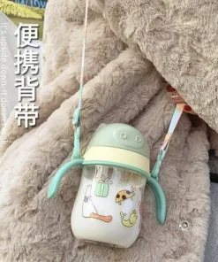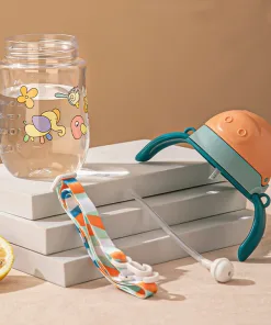 -Có cả tay cầm và dây đeo giúp bé thuận tiện hơn trong việc cầm nắm và mang bình nước đi