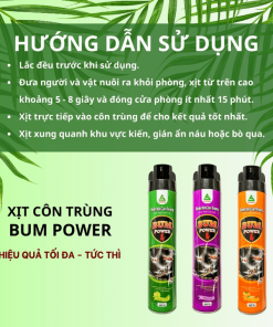 Bình Xịt Côn Trùng BUM POWER với công thức mạnh gấp 2 lần so với xịt côn trùng thông thường trên thị trường, giúp “Hạ gục nhanh, tiêu diệt gọn” các loại côn trùng như kiến, gián, muỗi…