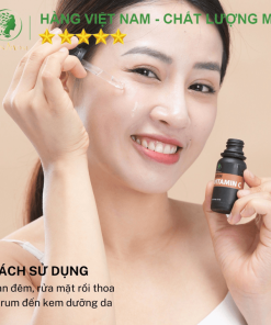 - Cuối cùng nhỏ vài giọt Serum Vitamin C lên khắp mặt, có thể thoa nhiều hơn chỗ vùng bị thâm, sạm nám hay sẹo.