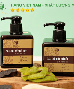 - Dầu gội cốt bồ kết với nguyên liệu 100% nguồn gốc tự nhiên như bồ kết, bưởi, mần trầu, hà thủ ô, hương nhu, sả. Giúp trị gàu, kích thích mọc tóc, nuôi tóc dài, suôn mượt.