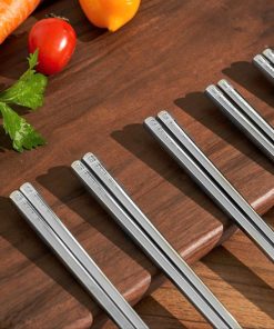 Model:• Chất liệu inox 316• Chiều dài SET 10 đôi: 24.2cm.• Đũa thân vuông thon gọn, dễ dàng gắp các loại đồ ăn• Dễ cọ rửa, không bao giờ mốc hay cong vênh như đũa gỗ.• Đầu đũa được khắc lasers mật độ cao chống trơn trượt khi gắp.• Mỗi set 10 đôi đóng hộp đẹp• Bảo hành 12 tháng