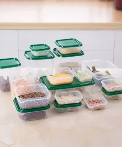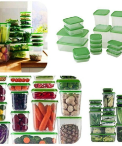- Sản phẩm bao gồm 17 hộp với kích thước to nhỏ khác nhau giúp cho khách hàng đựng được tất cả các loại rau củ, thịt cá hoặc đồ ăn khô, hạt ngũ cốc…