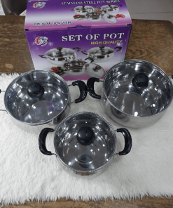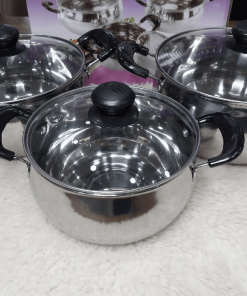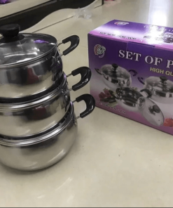 Thông tin sản phẩm: BỘ 3 NỒI INOX QUALITY 2 QUAI ĐEN (16CM,18CM,20CM) – GDN
