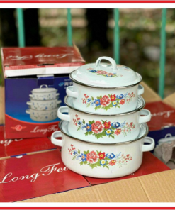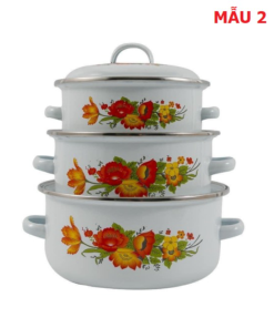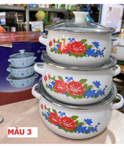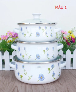 BỘ 3 NỒI TRÁNG MEN CAO CẤP DÙNG ĐƯỢC BẾP TỪ
