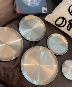 Bộ 5 đĩa inox dùng cực bền và tiện, có nhiều kích thước để lựa chọn đựng đồ ăn, đĩa thiết kế nông, dễ dàng vệ sinh, dễ cất gọn