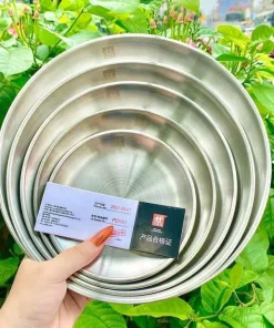 Siêu sang siêu đẹp các chị ơi, hẳn là bộ 5 đĩa inox xịn sò đang được sale ạ