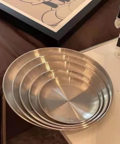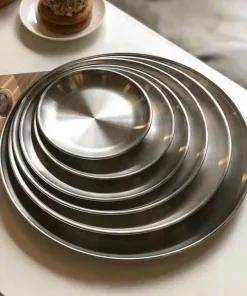Bộ 5 đĩa inox dùng cực bền và tiện, có nhiều kích thước để lựa chọn đựng đồ ăn, đĩa thiết kế nông, dễ dàng vệ sinh, dễ cất gọn