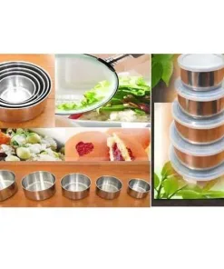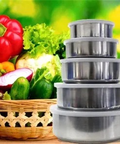 Bộ thố inox cao cấp có nắp đậy bao gồm 5 thố với kích thước khác nhau cho bạn thoải mái đựng các loại thực phẩm cần thiết.