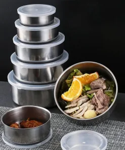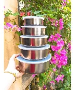 Bộ thố inox cao cấp có nắp đậy bao gồm 5 thố với kích thước khác nhau cho bạn thoải mái đựng các loại thực phẩm cần thiết. Sản phẩm được làm bằng inox cao cấp với kiểu dáng đẹp mắt, không gây hại cho sức khỏe. Thố có nắp nhựa đậy kín hoàn toàn giúp bạn bảo quản thực phẩm an toàn và sạch sẽ. Có thể dễ dàng lau chùi sạch sẽ và không bị ám mùi như hộp nhựa. Giúp cho không gian bếp nhà bạn thêm hiện đại, cho gia đình bạn những bữa ăn thơm ngon, dinh dưỡng