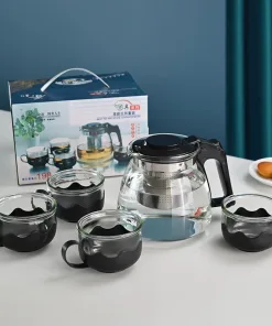 Sản phẩm bao gồm bình lọc và 4 tách trà hiện đại, đáp ứng nhu cầu thưởng thức, pha chế của khách hàng.