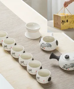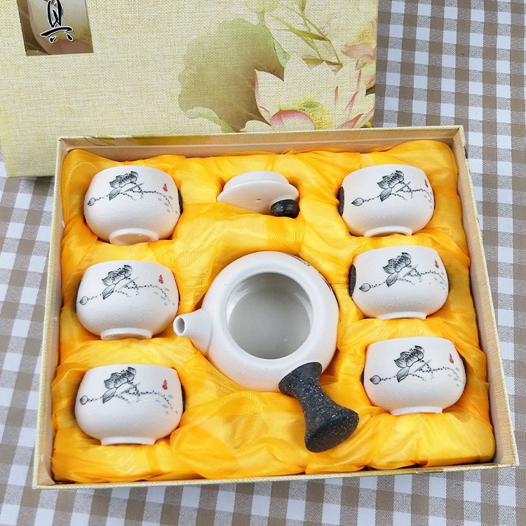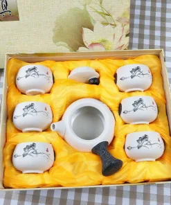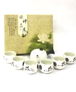 - Trọn bộ 7 món gồm: 1 ấm pha trà 180ml + 6 chén trà 50ml + Hộp bìa cứng kích thước: 30cm x 20cm x 10cm.