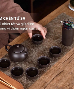 - Bộ ấm chén tử sa cao cấp được làm tinh xảo từ đất tử sa có đặc tính hấp thụ hương của loại trà. Ấm càng lâu năm, càng hấp thụ hương vị trà càng nhiều thì trà pha ra càng ngon. Ấm dùng lâu, khi pha không cần trà khi rót nước sôi cũng tỏa hương trà như vậy là cũng có trà để uống.
