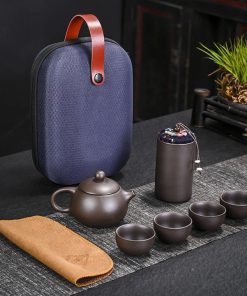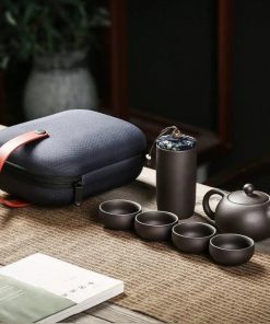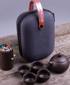 Một bộ gồm một túi đựng, một ấm và bốn chén.